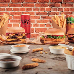 If you're in the mood for something a bit spicier, try the Menu merguez burger. This delectable burger is made with savory merguez sausage, melty cheese, crunchy veggies, and your choice of sauce, all tucked between a soft bun. It is also served with fries and a drink for just 6.50.
